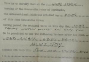 Bill Spry's certificate from the Cardinal Puff drinking game.