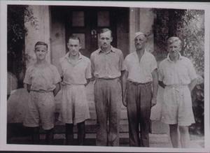 After getting our cabins, and then rolling in the fuel line, we departed from the Regensburg and finally got under way at 11.00 am that morning, with a lot of cheering and waving from both vessels, setting a North East course, from which we then knew that we would be heading for Singapore or even possibly though more unlikely Japan. The Dresden was a substantial cargo/ passenger ship of 11,000 tons, and before the war had been used on the Hamburg / Argentina route. She was under the command of Captain Jaegar, with whom Mother got on well, although our Captain Stratford found him very overbearing. Probably he had an antipathy to Australians, because he had during the First World War been imprisoned first in Darlinghurst gaol N.S.W. under a very harsh regime, but he was later at Berrima where he had been well treated with happy recollections. Also as a passenger was a Major Willhelm Meisner (little Willy) who was travelling to assist the military Attache in Tokyo. He had a small fox like face wore rimless glasses that were the fashion amongst the German officers, and was always over correct in dress and mannerisms, but otherwise he was quite pleasant and was also well educated and could converse well.