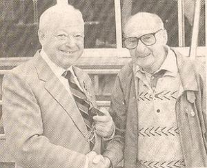 Fred Neale and Les Hughes, from No 36 Squadron are Reunited at Shoreham Airport. September late 1970's (image reproduced by kind permission of the Shoreham Herald)