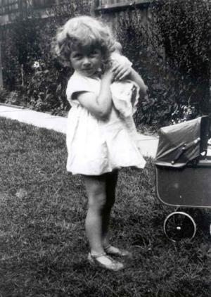 Jeanne as a girl 1936 in the back garden at 42 Lammas Road