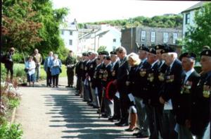 Normandy Veterans Association Service of Remembrance, St Nicholas Church Gardens, Whitehaven, Cumbria, 6 June 2005. Members from the NVA remember fallen comrades from the war years. Councillor Norman Clarkson, Mayor of Copeland laid a wreath at the NVA West Cumbria Branch Commemorative Plaque.