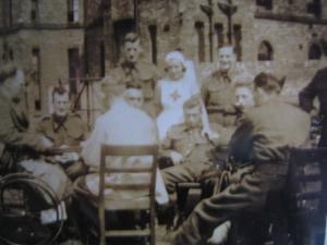 M J Tulip, VAD nurse, at Fenham Barracks, Newcastle, with men evacuated from Dunkirk
