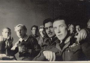 This is a picture of me, Leslie Angell, with my colleagues in the RAF. I'm the one holding the cup.