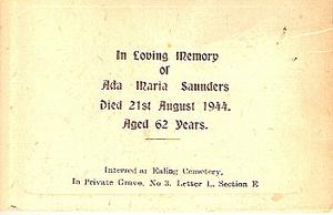 Mums aunt, Ada Maria Saunders, was killed on 21 August. I believe due to flying bomb on the house.