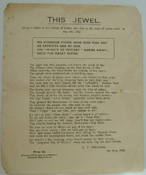 Poem sold around Exeter after the Blitz in May 1942. The poem was bought by June Davey for 3d