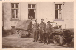 Behind the jeep was a trailer that was sometimes used to sleep in and was also used for taking prisoners back to HQ. We were sent back to Belgium and on the way my jeep was wrapped round a tree (by another member of the Hussars)
