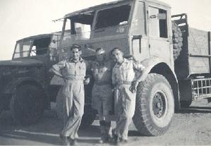 Here is a photo of me and two Pinkies next to two trucks -- the one on the right is a Foden (made in Sandbach, Cheshire) and the one on the left is a Leyland.
