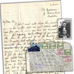 1940. Nell Coates letter to friend Vi Brooks offering to sponsor her children Beryl and Brian in Australia and ”look after them as my own”. The UK Government postponed the ‘Children’s Overseas Reception Board’ evacuation scheme following many deaths from U-Boat attacks. Inset: Beryl and Brian Brooks, May 1940.