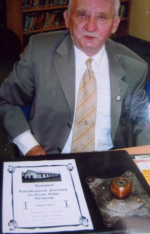 Every year, Thomas Jones visits Eden Camp museum in Yorkshire, to lay a bunch of flowers with a small card with the names of three Danes: Lars P Larsen, Hans P Hansen and Olga Hansen. Those three Danes helped amongst others Thomas Jones and Frank Fuller to hide from the Germans after they, on 27th April 1945, had to make a forced landing with a British bomber in Plouglund Mose towards the end of the second world war. A brave effort from the Danes who risked their lives by helping the English. Thomas' gratitude to the three Danes and their families is enormous.