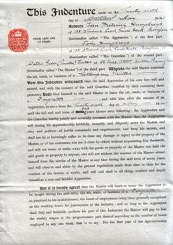 After a couple of unsuccessful interviews with firms who had approached the Birmingham School of Print’s Head, Leonard Jay, for possible apprentices, I was employed by Watkin Gabb (Printers) Ltd, 88 Vyse Street, Hockley. After a short probationary period my Indenture of Apprenticeship, then a term of seven years, was signed by my Father, myself, and my employer, JC Kelland, on my 16th Birthday, 26th May 1941. I well remember that my Father, in his lunch break, arrived early and so we walked around the block until the appointed time.