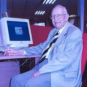 This is a picture of ex World War II veteran Alistair Kynoch Urquhart on the University Learn Direct premises, Overgate, Dundee, photographed 19/09/2005 by the Courier. Alistair is holding the Champion Learner Trophy for Learn Direct Scotland he won in 2005. It was presented to him at the Hub Edinburgh on 12th September 2005.