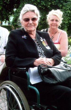Marie Blezzard from Carlisle, Cumbria. During World War Two Marie was in the ATS and also went around the UK entertaining troops. On 26 June 2005 Marie took part in the official county of Cumbria ‘Victory Parade’ commemorating the 60th Anniversary of the end of World War Two. [Photograph by Joseph Ritson]