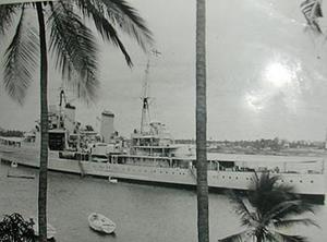 Another incident I recall was rushing to the lookout position, going up the ladder, with bits of furniture, books and pictures were getting thrown out of the dept and someone shouting, ‘Get the hell out of here — there’s an unexploded bomb!’. The bomb was got out and taken to the upper deck and as a few men pushed it over the side, the ship rolled the other way and the bomb rolled on top of them. They eventually picked it up again and threw it over the side.