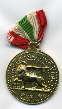A commemorative medal presented to me in Mirano in 1996. This marked 50 years since my entry into Venice during WW2.