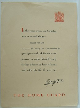 Letter from the King thanking Charles for the time he gave to the Home Guard