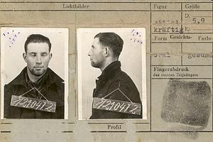 Jim did speak of the prisoners raiding the camp’s offices after liberation and he was able to obtain his Dulag-Luft Kriegsgefangenenkartei (prisoner of war card index) from which the above photographs have been copied. On the reverse is attached his Kriegsgefangenenlager (prisoner of war record).