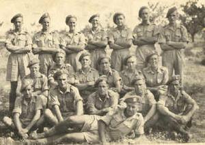 The picture of the Battle Patrol shows, third from the top left his old mate Gordon, third Charlie G fifth Best, bottom row 2nd figure Davies, 4th figure Carter, Bunny Austin is the sergeant in the fore ground. (Sadly time has taken the names of the others.)