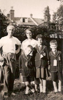 There was no school so we spent most of the day walking around the country and picking blackberries. I cannot remember anything about the food so it must have been alright except we had blackberry and apple with every meal. Some of the children were not so lucky and were not treated so well. As there was no suitable place for us to use as a school after six weeks we moved to Thetford in Norfolk. We went by coach and as we got on we were given a brown paper bag containing some food, tea, sugar, condensed milk and the biggest bar of chocolate we had ever seen. This was an emergency ration. The billeting officer had trouble finding a family that would take three evacuees. Luckily he eventually found a very kind family who took us in. The father was a well to do builder. They had two children of their own who were rather spoiled. They had lots of toys including a huge electric train set. We enjoyed most playing on their pianola. This was like a piano but you could put rolls into it and then pump the pedal with your feet.