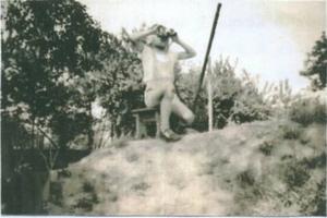 Young Maurice on top of the shelter using it as a look out post during all clear periods