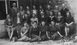 Patricia Sainsbury is in the middle row, third from the right, with the Food Office Staff in Oriel House, Thornbury, South Gloucestershire. Photograph taken during 1940.