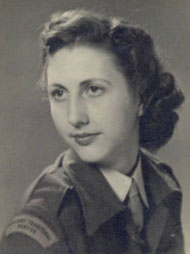 This was my 'working' uniform, shirt, tie, battle-top jacket and trousers. It was taken in London, in a studio in the strand. Our collars, which were separate from the shirts, were sent to a Chinese Laundry in Kings Road, Chelsea, and came back beautifully starched. We were very proud of our uniform . We also had leather jerkins and a greatcoat, and our 'walking out' uniform of belted jacket and skirts.