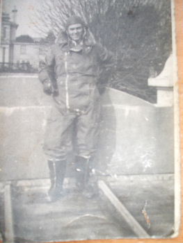 This is a picture of my Grandad Arthur James Kirk or Warrant Officer Kirk as he was known then. He is wearing his flying suit as he was an air gunner and flew in Lancaster planes. Unfortunately I don't know where this photo was taken.
