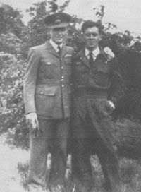 Denis Thorpe with his wireless-op visiting the crash site in Alsace