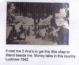 It cost me 2 Ana's to get this little chap to stand beside me. Money talks in this country. Lucknow 1942
