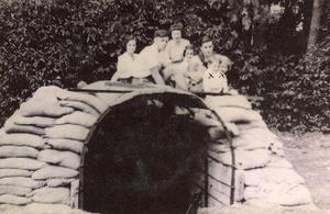 Many times during lessons, we would hear the air-raid siren go. We would immediately pick up our books and together with our gas-masks (which would be carried with us at all times) proceed in an orderly fashion to the underground shelter, led by our teacher. This was still the Anderson, but many of them were joined together to make long tunnels. I think there were two tunnels for our school. On entry to these shelters, each side consisted of narrow wooden slatted benches. Lamps were provided to enable us to continue with our lessons (no slacking whatsoever) but once the all-clear was sounded, we then returned to the classroom to continue as before.