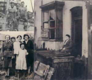 Top Left, Jack Johnson(left)on The Dumana; Bottom Left, Lily, Gladys, Lilian, Mary and little Poppy Johnson; Right Lilian Johnson outside bombed out home Bordesely Green Birmingham (1942/3?)