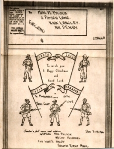 Margaret Pycock’s brother, Cliff, was stationed in India during WW2. He sent her these letters. They were originally written on big sheets, but they were photographed and reduced in size to about A6, and it was these postcard-sized sheets that Margaret eventually received.
