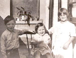 Bobby, Betty and Wyn in the garden. But changes had started, the livingroom window is now blacked out so that we didn't show light at night.