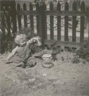 Many years afterwards a family discussion turned to the substance of dreams. I have vivid memories of childhood dreams and so described one to my mam and dad: I was in my cot, above my head a bright red object circled slowly and I watched to see if it would land. I subsequently thought of it as a flying saucer, but at the time I just wondered what it was. I trailed my hand through the cot bars — into ice cold liquid. I looked down to see a horrible dirty grey pool swirling slowly. But that was no dream, the air-raid shelter had become flooded and it was my cot that was slowly circling. Mam had been very shocked to find me like that — she had put me into a dry shelter, then returned to the house for the big biscuit tin that held all our important documents; insurance policies, birth certificates etc. Dad was on nightshift at Britannia Wireworks. The shelter had been flooded while she was away, because of a burst water main.