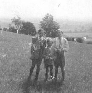 Sid, Ken and me on the farm at The Manor House, Wedmore, Somerset. Summer, 1940