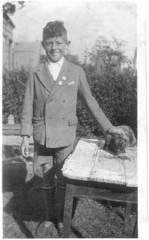 Ray with pet rabbit at Ramsey, Essex. October 1939