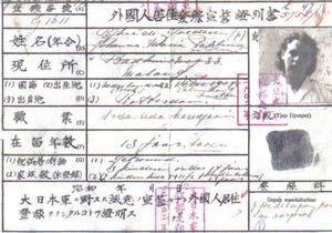 FAMILY JAPANESE IDENTIFICATION CARD ISSUED TO US ON ENTERING THE CONCENTRATION CAMP.