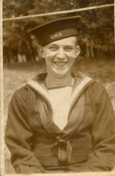 Photograph of Ben Brooks in Plymouth after completing training before starting his service on HMS Grindall.