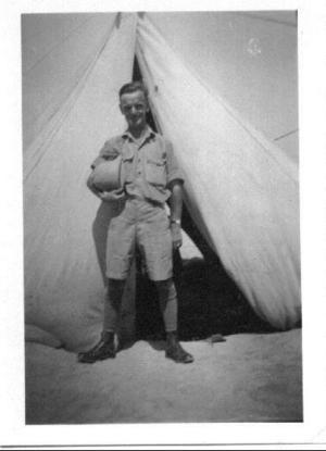 E. R. Knowles the writer of the story outside his tent in the North African desert 4/9/1942