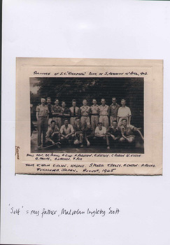 Finally very late in the evening at dusk - at very short notice all the Nankin’s first and second class passengers, including the Service Officers, Capt. Stratford, the Purser, Chief Steward and Stewardess, and cadet Crocker, together with twenty merchant seamen mostly from from the British tramps were hurriedly put into floats with their belongings and transported about twenty at a time. The weather was quite rough with a strong south westerly wind, and the women and children were all hoisted in baskets at either end. It was 10 o’clock at night before the final transfer took place. The women and children myself included, all bedded down for the night in the dining saloon on the floor. Next morning by 8.30 am the Regensburg had completed the re-fuelling, and a few hours later departed, returning to the Nankin and eventually she arrived in Yokohama 16 days after us, although at the time no one was aware of where we were heading.