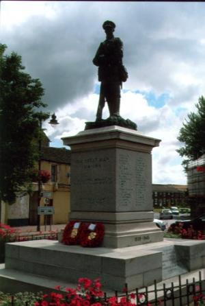 Egremont War Memorial, Cumbria, Sunday 14 August 2005, 60th Anniversary of the end of WW2. Poppy wreaths were laid at the memorial that day. During WW2 “Egremont’s most famous airman” was Squadron Leader Jack Blair DFC DFM, killed on a mission to Duisburg, May 1944. [Photograph: Joseph Ritson]