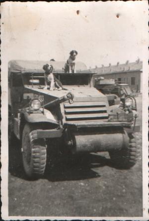 Queenie and Curly posing on one of 'A' Squadron's Half-Tracks