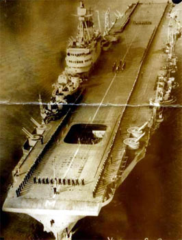 HMS Implacable, aircraft carrier, entering Vancouver harbour, Canada November 1945