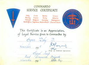 Commando Service Certificate November 1945