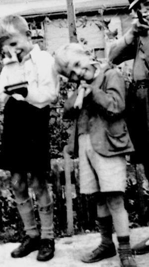 The photograph shows me in the middle with wooden rifle, aged about six.