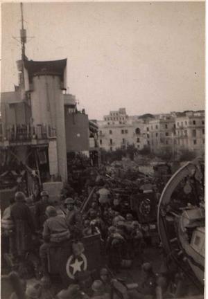 "After our second trip, we were pronounced “Operationally Unfit” and lay in Naples. Meanwhile we were hearing by radio how hot things were up there. Bombing went on ceaselessly. The cruiser Spartan and destroyer Inglefield were sunk. Jerry also made great use of glider bombs and rocket bombs.