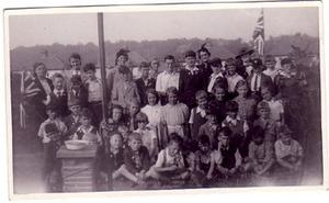 The picture you can see above is a party for the 'Cogs'. Both my parents were in charge of the salvage operations for the estate, which meant a collection point outside our house for paper, metal and (probably) glass. Is recycling anything new?! The 'Cogs' were children, and our job was to go around collecting recyclable material. Once a year, as a thank you, my mother organised a party for all salvagers in our garden. In this picture, I'm the girl in the white dress in the middle of the picture. Mum is directly behind me, right at the back. She wasn't as severe as she looks there! And my brother is to her left. We didn't get any money for our efforts, only the glory!