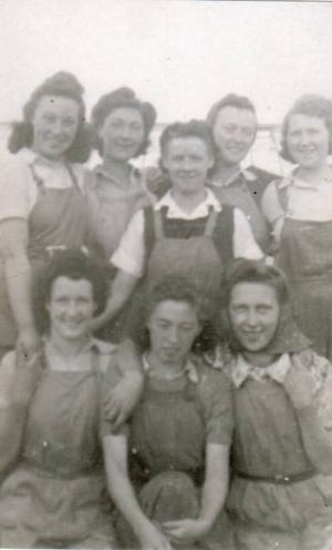 At first I travelled by trolley bus to Edinburgh Drive, then walked to the nurserv, then I used to ride an ex Post Office bike with a cross bar, which took 20 minutes. There were 56 very long greenhouses growing tomatoes. There was one man and three girls to six greenhouses. The men stoked the boilers to heat the greenhouses. All the soil had to be steamed to sterilise it and we also would shovel it onto a sieve and the stones had to go in a barrow and be tipped out. Some of the men workers were ‘savage’ and wanted to get the women down, but it just made us more determined ~ someone put a frog in a girl’s pocket; they would ask us to go for a bucket of steam and some gullible girls would go; and they would also asked for the ‘tartan’ hosepipe. We got blisters on our hands that burst and were bleeding and one of the men said ‘Those are the only medals you’ll get in this War’ ~ sadly, the Land Army girls didn’t receive a war medal.