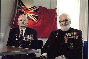 The poet Bill Dixon, on the right, and the subject of the poem, Bob Lang, being interviewed for the Merchant Navy Project in Liverpool in 2004. Both are members of the Blackpool Merchant Navy Association.