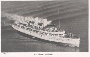 M.V. Royal Daffodil. Built in 1939 by William Denney and Brothers, Dumbarton. 2060 Tons gross, 313 feet long, 50 feet beam, 4500 B.H.P. Speed: 21 Knots. Capacity: 2073 Passengers.