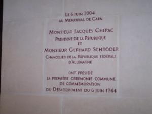 Exactly 60 years after the first Allied Landings in Normandy, a German leader was invited to take part in the official commemorative services of D-Day. On Sunday 6th June 2004, the Chancellor of the German Federal Republic, Gerhard Schröder, was welcomed to a moving and solemn ceremony at the Caen Memorial by the French President, Jacques Chirac.